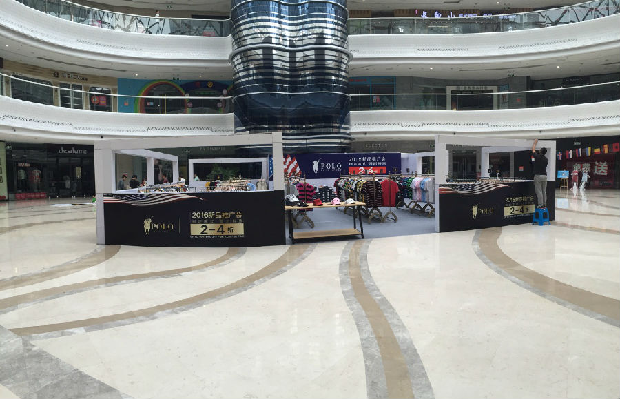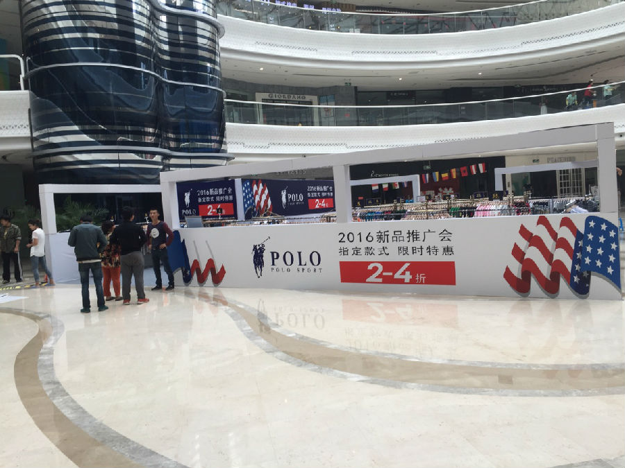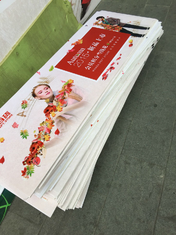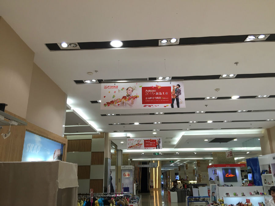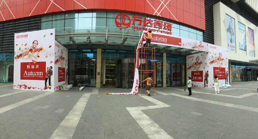 丹東萬達(dá)百貨秋季新品活動(dòng)展板吊旗 噴繪布安裝