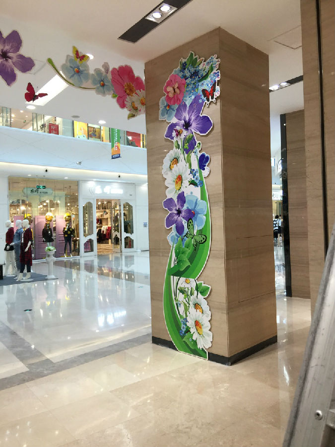 丹東萬達(dá)百貨秋季新品活動(dòng)展板吊旗 噴繪布安裝 吊眉 安裝制作 展板 制作安裝